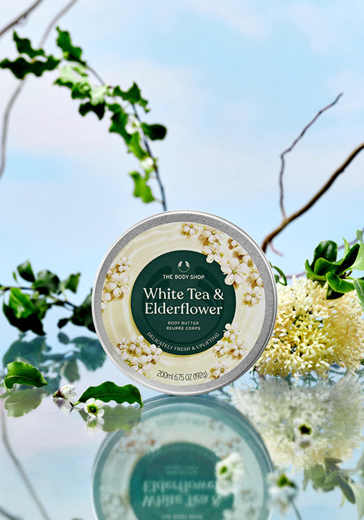 Give your skin a rich, hydrating treat with our White Tea & Elderflower Body Butter.