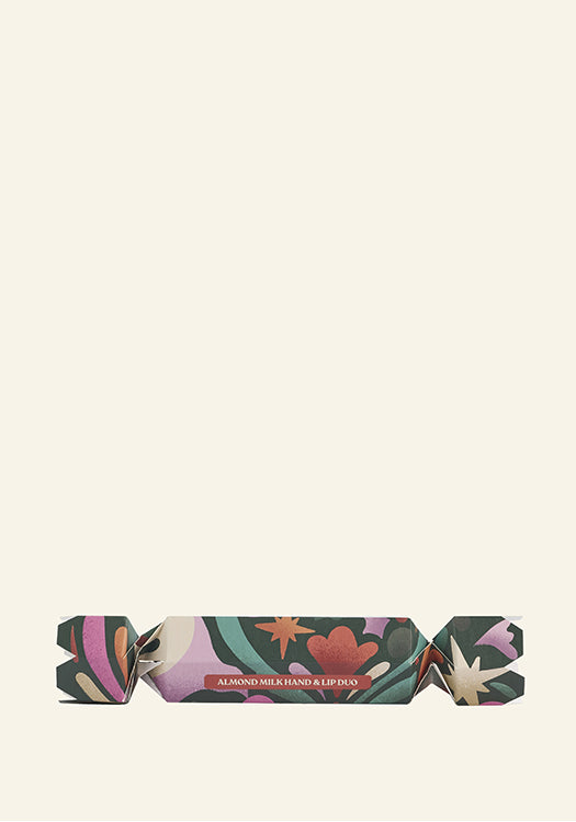 Regalate ad una persona speciale una piccola dose di idratazione confortante con il nostro Duo mani e labbra al latte di mandorla, una coppia premurosa racchiusa in un cracker festoso.